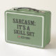 This is a standard metal lunchbox that appears to work just fine. We designed this box ourselves with an uploaded photo and custom text on the front and back. It looks absolutely beautiful except the front of the lunchbox is not centered like it shows in the photo. The print borders don't align with the inset flat part of the box where the preview photo online showed it perfectly centered in there. The back looks nice and centered though.