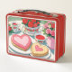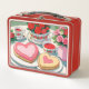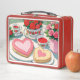 This is a standard metal lunchbox that appears to work just fine. We designed this box ourselves with an uploaded photo and custom text on the front and back. It looks absolutely beautiful except the front of the lunchbox is not centered like it shows in the photo. The print borders don't align with the inset flat part of the box where the preview photo online showed it perfectly centered in there. The back looks nice and centered though.