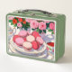 This is a standard metal lunchbox that appears to work just fine. We designed this box ourselves with an uploaded photo and custom text on the front and back. It looks absolutely beautiful except the front of the lunchbox is not centered like it shows in the photo. The print borders don't align with the inset flat part of the box where the preview photo online showed it perfectly centered in there. The back looks nice and centered though.