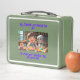 This is a standard metal lunchbox that appears to work just fine. We designed this box ourselves with an uploaded photo and custom text on the front and back. It looks absolutely beautiful except the front of the lunchbox is not centered like it shows in the photo. The print borders don't align with the inset flat part of the box where the preview photo online showed it perfectly centered in there. The back looks nice and centered though.