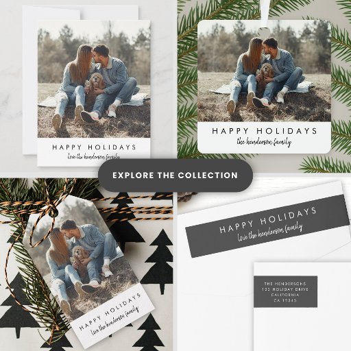 Add a modern touch to your holiday décor with this stylish metal "Happy Holidays" Christmas ornament featuring your favorite photo. Designed with clean lines and contemporary typography, this ornament blends luxury and simplicity for a timeless festive look. Easily personalize it in Zazzle’s design tool by uploading your image, adding names, or including the year. Printed on durable aluminum with a glossy finish, it’s lightweight yet premium, reflecting the light beautifully on your tree. Perfect for couples, families, or friends, this personalized photo ornament also makes a thoughtful gift for loved ones. Celebrate Christmas with a keepsake that combines elegance, style, and warmth in a sleek, modern design you’ll treasure for years. The image shown is for illustration purposes only to be replaced with your own photo. The placeholder image is of a loving romantic happy couple in wearing double denim, sitting on a picnic rug with thier adorable spaniel dog.