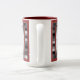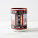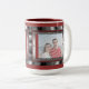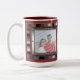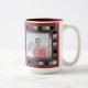 Shown is the white mug with red accents and two metal look chrome frames for two of your images. Easy to insert two photographs into the templates for a personal gift idea. Change the background and border colours also! Get one for yourself too! A unique and cool mug that stands out from the rest. Other styles and colours of mugs are available. Great for Father's Day, Mother's Day, birthdays, Valentine's Day, Christmas, anniversaries, weddings, etc.