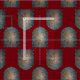 Linda Baysinger Peck’s painting of a gold, mediaeval, heraldic, rampant lion, on faux metal shield, with red fleur de lis tone on tone background. Image © Linda Baysinger Peck All Rights Reserved