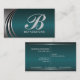 Metal silver grey dark teal, monogram eye-catching business cards. A modern design, featuring metal silver grey curves with black outline and your monogram/initial on gradient dark teal background. Click on “Customise it” to have a better result and choose colour, and place for your initial. Perfect for many industry fields, construction, insurance, financial, engineers and more.