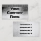 A stainless steel silver metal surface grunge look chrome is a bold, unique 3d look business card. Border of rivets add to the design. Easily customise with your own information. Use the perfect font style of bold black lettering with screws in the design, or easily change the font style. The perfect professional looking card especially for industrial, construction and building occupations. More information can be put on the back as well onto the same metal background. A strong business card that stands out from the rest.