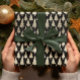 This holiday wrapping paper features simulated metallic gold faux foil ornate christmas pine tree silhouettes scattered over a beautiful modern black colour