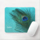 Metallic Aqua Blue Peacock Feather Mouse Pad