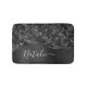 Easily personalise this black brushed metal and glamourous faux glitter patterned bath mat with your own custom name.