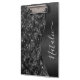 Easily personalise this black brushed metal and glamourous faux glitter patterned clipboard with your own custom name.