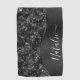 Easily personalise this black brushed metal and glamourous faux glitter patterned golf towel with your own custom name.
