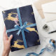 Metallic Blue and Golden Reindeer Wrapping Paper