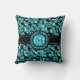Metallic blue and white floral damask pattern over black background. Custom monogram
