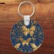 Metallic Blue Butterflies with Gold Vines Key Ring
