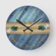 Metallic Blue-green silk- Gold Peacocks Feathers Round Clock