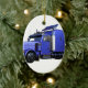 Metallic Blue Semi Tractor Trailer Truck Ceramic Ornament