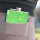 Metallic Bright Green Abstract Rain Drops Hip Flask