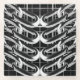 This image displays a repeating pattern of metallic chain links arranged in a structured grid. The chain links are rendered in a shiny silver finish, with realistic highlights and shadows that give them a three-dimensional appearance. The links are interconnected, forming an orderly and symmetrical design across the image. The background features a transparent grid, emphasizing the metallic elements and creating a clean, industrial aesthetic.