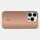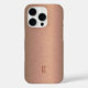 This iPhone case design features an image of a metallic copper tone texture background with a brushed metal look and a simple two-letter modern font customisable monogram.