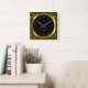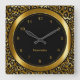 Metallic Dark Gold and Black Leopard Print Square Wall Clock