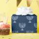 Here we have a wrapping paper that features a metallic filigree menorah on a dark blue background. This paper is available in multiple sizes and is a match to other wrapping papers, tissue papers, gift bags and a greeting card. This is sure to make a perfect addition to your gifts this holiday season.