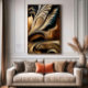 Dive into opulence with this hypnotic abstract work. Waves of liquid metal in gold, bronze, and silver glide organically over deep black. Textures reminiscent of silk and feathers bring dynamism. Ideal for high-end decor and premium branding.