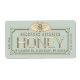 Elegant honey label with elaborate border and heraldic honeybee. Personalise with your beekeeping business name, net weight and apiary location. Honey is written in an 'embossed' gold font. Vintage mediaeval illustration from UK of a honeybee in a metallic gold oval.