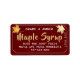 This maple syrup label can be customised with your name or business name, address, contact info such as webpage or cell# and maple syrup volume. There is a handy list of common container sizes with their conversions in the form field where you fill in your information. Black background with gold text and border. For a special touch, the word “maple syrup” has a 3D appearance. Two dainty gold and yellowish-orange leaves are scattered on the red background as though they were falling from a sugar maple in autumn.