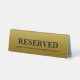 Designed to work across a wide range of seating arrangements, this reserved sign on table is compact and stylish, making it versatile for use on dining tables, countertops, or even at event venues. Its metallic gold background not only catches attention but also complements various styles and colour schemes, blending seamlessly into classic, contemporary, or even themed decor. The reserved table sign template is easily customisable to suit your brand or event needs, allowing you to update the text or add special details to reflect your venue’s unique character or the nature of the occasion.