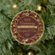 Metallic Gold Damask And Ribbon Ceramic Ornament