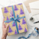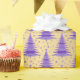 Metallic Gold Purple Christmas Trees Pattern Wrapping Paper