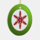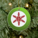 Metallic Green Circle and Red Snowflake Ceramic Ornament