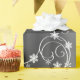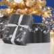 A festive pattern of large white swirls, snowflakes and stars scattered over a metallic grey background, to add an elegant touch to your Christmas gift wrapping these holidays.