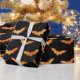 Metallic Orange Bats and Black Halloween Wrapping Paper
