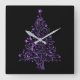 Metallic Purple Stars Christmas Tree Elegant Black Square Wall Clock