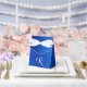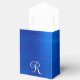 Customise the white curly script monogram font to create your own personalised tent style favour box with a ribbon.