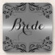 Elegant metallic silver grey tones background stainless steel look, with black floral frame and word bride in black customisable text.