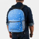 The design features cool, metallic rain droplets in a sky-blue colour. It has an abstract style and a bright blue hue.