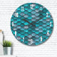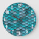 Metallic Turquoise Teal Mermaid Scales Pattern Large Clock