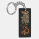 Stunning, intricate metallized artwork with ornate brooch and Chinese dragon design on monogrammed keychain.