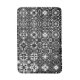 Bath mat in a four-way metamorphosis of arabesque medallions in black and white
