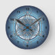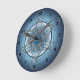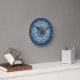Wall Clock designed with a silver Metatrons Cube on an enigmatic blue background.