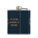 The flask itself is fine. It’s a cheap flask, obviously bought in bulk, however am prepared to overlook that. Given that it is a personalized item, I would have liked to have seen gift boxing instead of the generic packaging. Terrible printing, and/or quality. It’s a cheap, tacky vinyl. It is not cut straight and is also applied in a way that it is overhanging the bottom, causing the glue to catch on items and it will eventually roll and tear, damaging the wrap.