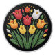 This decorative knob showcases a First Nations Métis beadwork–inspired bouquet of tulips in bright yellow, vivid red, soft orange, and pure white. Each blossom rises above textured green leaves, framed by tiny bead accents against a black background for striking contrast. The design reflects the beauty of traditional beadwork while transforming into a functional piece for your home.