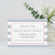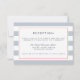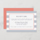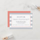 Designed to coordinate with our coral and grey Metro Stripe wedding and event invitations, this simple and chic reception information card features a background of wide horizontal stripes in pale grey and white, with your wedding reception details in a mix of modern block and traditional script typography styles in rich midnight blue. A thin border in summery vibrant coral adds a contrasting pop of colour. Add your key details like reception timing, location and transportation or parking using the fields provided.