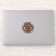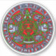 Hispanic tribal Mexican Aztec calendar sundial or sun stone. This sticker design features a colourized version of the famous classic pre-colombian sunstone. This custom cut vinyl sticker is waterproof. The sun stone is perhaps the most famous of all Mexican sculptures. The original monolithic stone was carved by the Mexica people at the close of the Mesoamerican Postclassic Period. Despite the fact that the exact date of the sun stone's construction has never been determined, the identifying glyph of the Aztec king Moctezuma II, at the centre of the disc, indicates that the monument dates to his ruling period from 1502 and 1520.