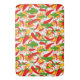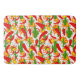 Hot and spicy bath mat printed with a bold pattern of red chilli peppers, cacti, and roaring flames.