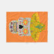 This awesome fleece blanket features a graphic design image of a Mexican Day of the Dead (Dia de los Muertos) inspired skull. The skull is a pale grey colour and is wearing a yellow sombrero. It has gold teeth and Mexican Sunflowers, also called Tithonias< instead of eyes. The sombrero has a cactus on it and is covered in pretty swirl patterns and red and green Chilli peppers. The skull itself is covered in pretty coloured flowers of different types.