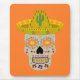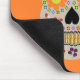 This awesome mousepad features a graphic design image of a Mexican Day of the Dead (Dia de los Muertos) inspired skull. The skull is a pale grey colour and is wearing a yellow sombrero. It has gold teeth and Mexican Sunflowers, also called Tithonias< instead of eyes. The sombrero has a cactus on it and is covered in pretty swirl patterns and red and green Chilli peppers. The skull itself is covered in pretty coloured flowers of different types.