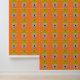 This awesome patterned wallpaper features a graphic design image of a Mexican Day of the Dead (Dia de los Muertos) inspired skull. The skull is a pale grey colour and is wearing a yellow sombrero. It has gold teeth and Mexican Sunflowers, also called Tithonias< instead of eyes. The sombrero has a cactus on it and is covered in pretty swirl patterns and red and green Chilli peppers. The skull itself is covered in pretty coloured flowers of different types.