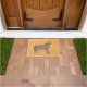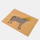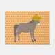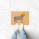 This awesome doormat features a pale brown donkey with a dark brown mane and tail. The Donkey is ready to celebrate the Day of the Dead, Dia de los Muertos. The Donkey is wearing a sombrero covered in red and green stars, carrots, colourful swirls, cherries and red and green chillies. There is a flower with orange petals and a yellow centre in the middle of the hat, called a Tithonia, or Mexican sunflower.